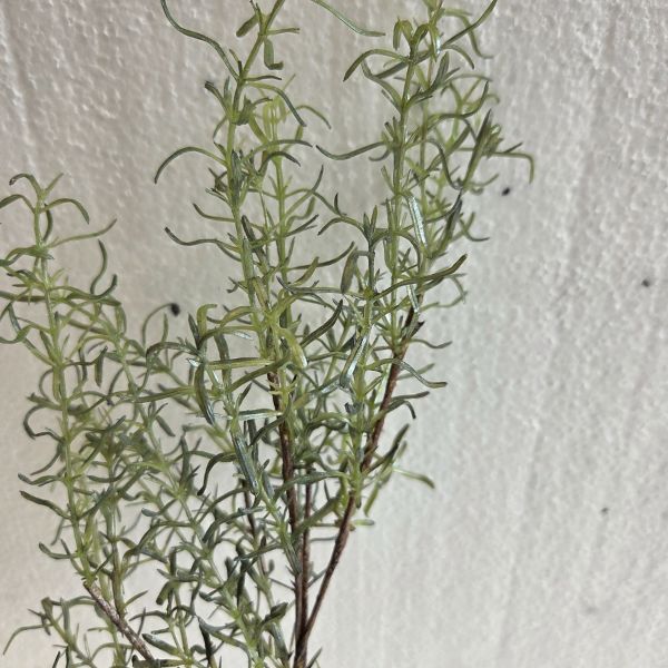 Aidonnäköinen Silkki Rosmariini juurilla 40 cm asetelmiin ja vihersisustukseen. Ilmava, luonnollinen ja huoleton tekokasvin oksa.